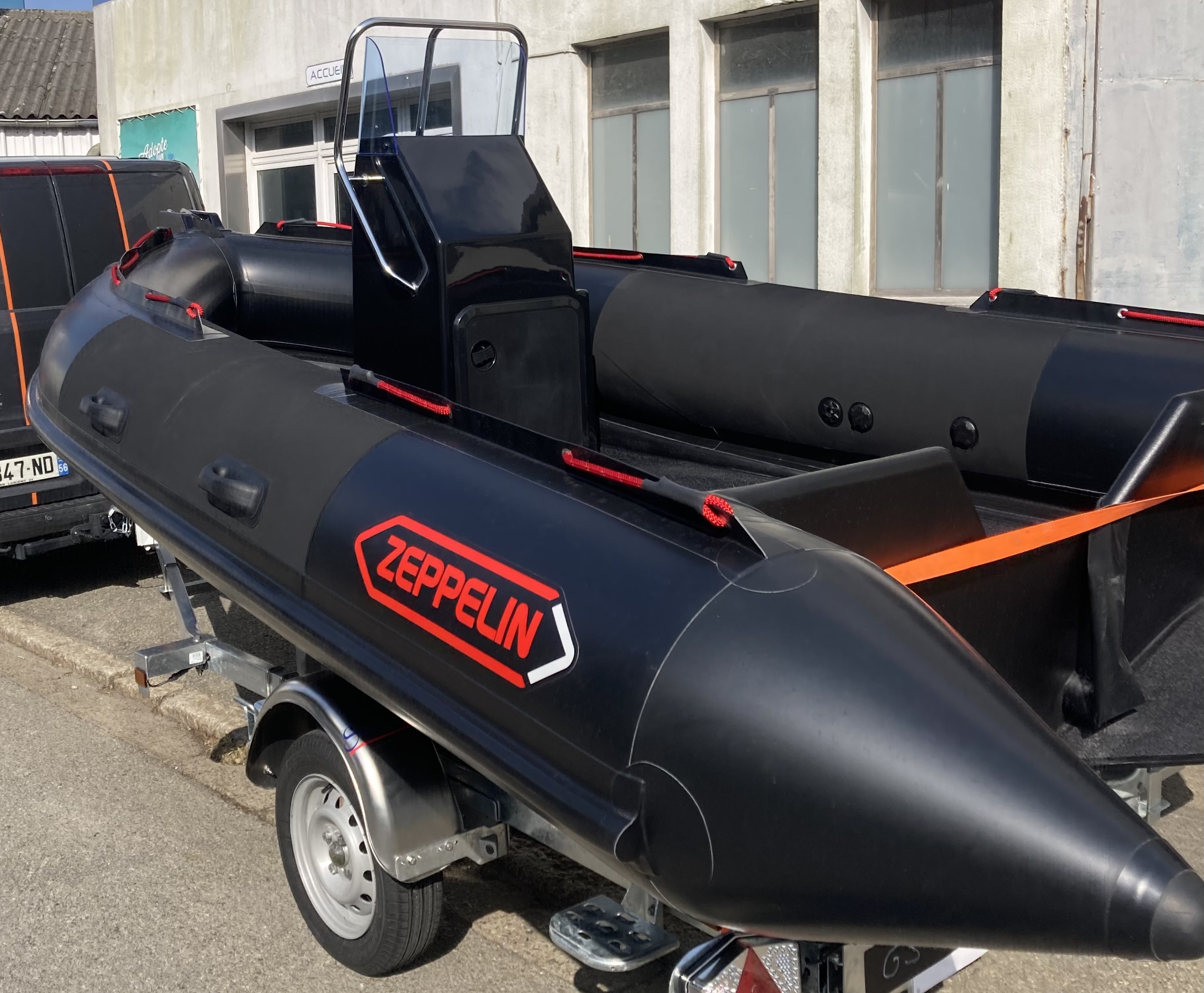 Le bateau se contente d'une remorque non freinée de 750 kg de PTAC: pas de soucis de maintenance des freins. hyper maniable et donc très facile à mettre à l'eau, tractable par n'importe quel voiture.