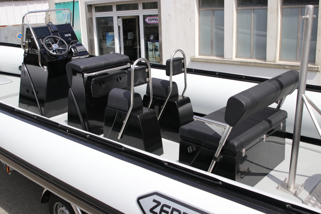 - Malgré son gabari imposant, le Zeppelin ainsi motorisé et avec une direction hydraulique de très haut niveau conserve une étaonnante maniabilité au port et lors des manoeuvres d'approche du bateau de course
