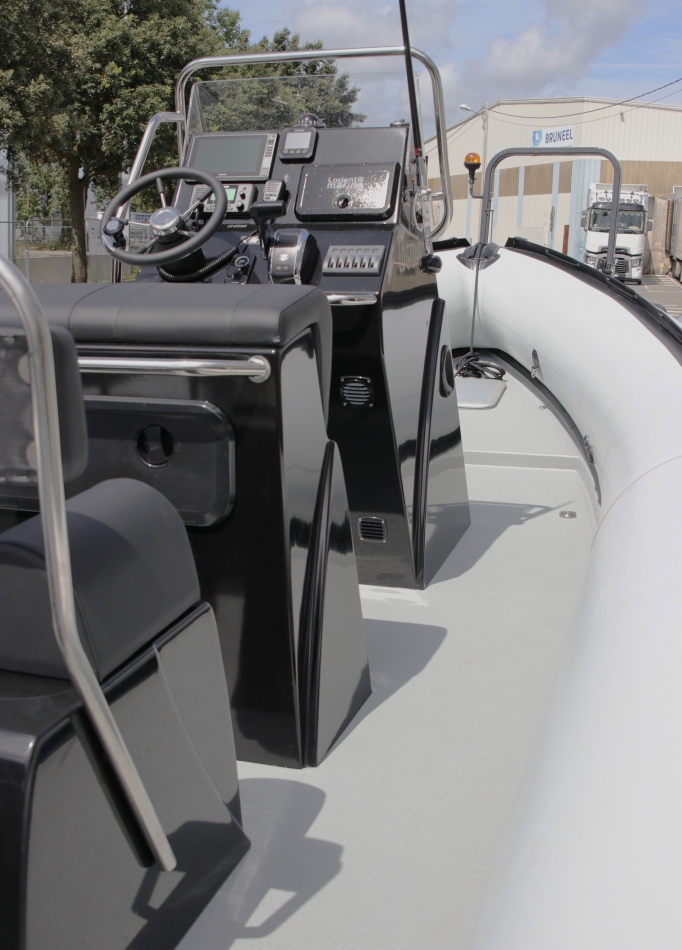 - Sa célèbre carène avec ailes de mouettes offre confort et vitesse de croisière élevée, y compris dans le clapot très formé, ce qui permet à l'équipe d'assitance de suivre le bateau de course longtemps à des vitesses élevées (entraînements, départs de course...)
