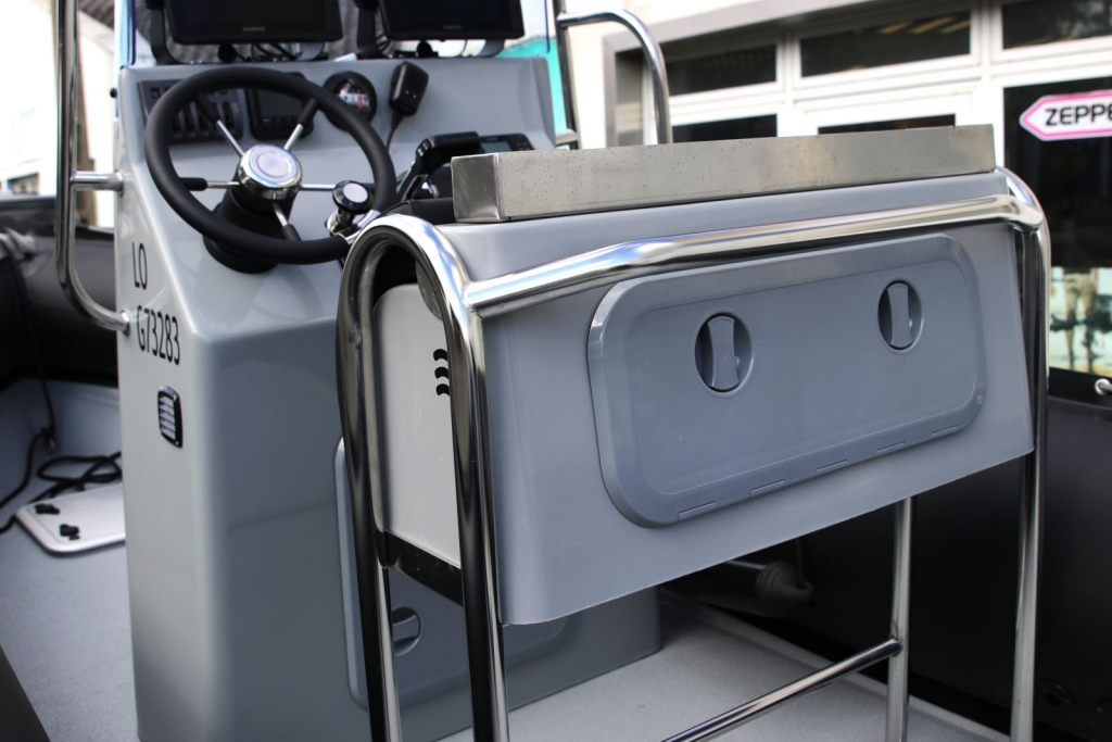 Concernant l'équipement, Christophe n'ayant pas de gros besoins de rangement, il a choisi la console C900, qui ne possède pas de siège/coffre à l'avant, pour gagner encore en surface de pont utile.